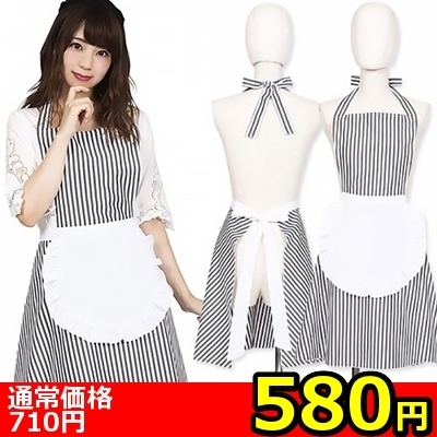 【580円★数量限定】フリルストライプエプロン ブラック<お一人様1点限り> ブラック