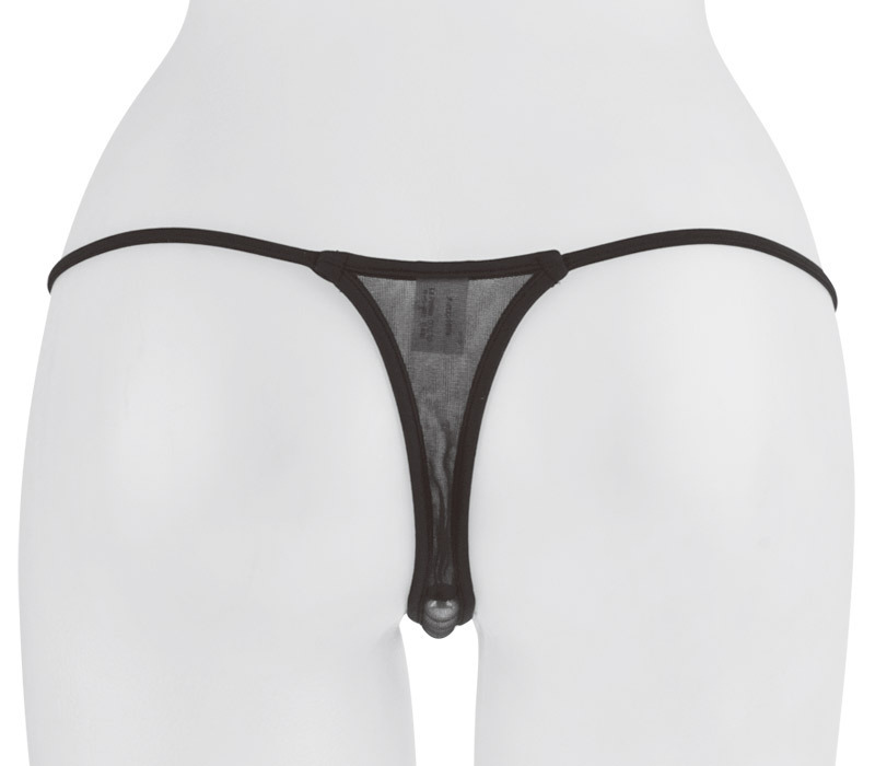 ●柔らかなブラックメッシュ生地●ウエストにはストリングを使用●際どくミニマムな三角フロント●クロッチ部にパールを8個内蔵●美しい曲線を描くGストリング。