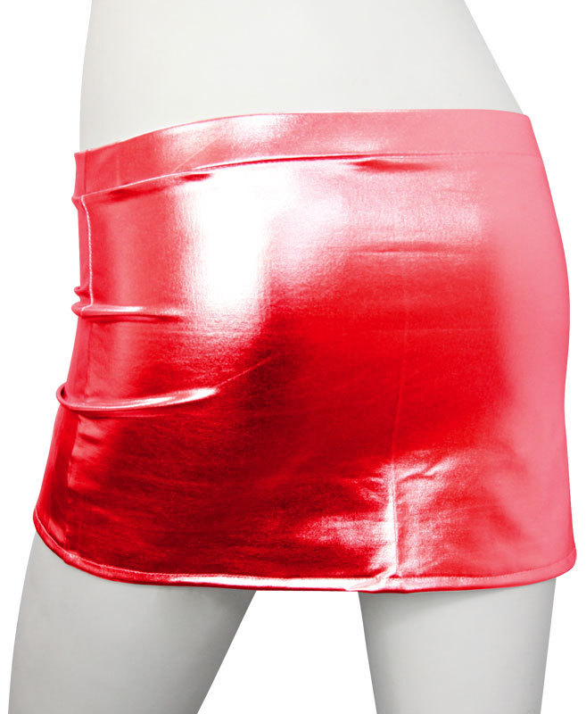 ド派手なレッドカラーの超お目立ちアイテム!キラッキラのツヤ感溢れるスリット入りミニスカート。