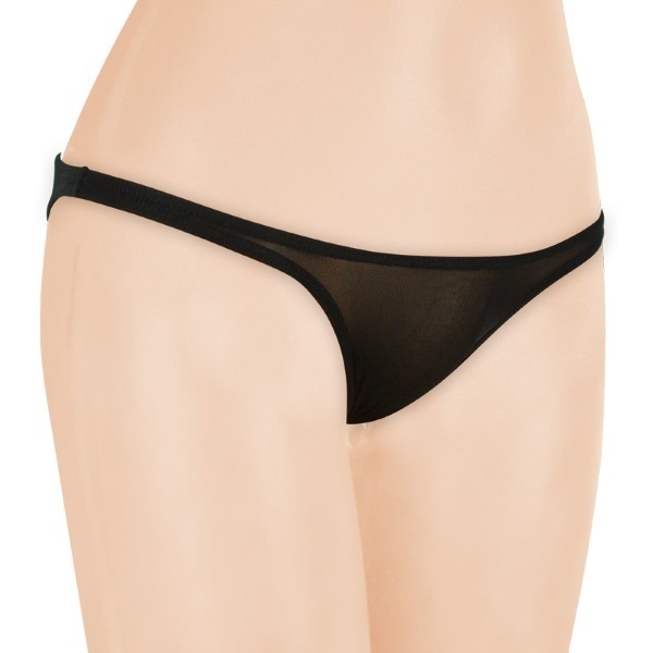 ●大人ブラックの極薄シースルー●サラッと快適な質感&穿き心地●全方向に伸縮するストレッチ力●ややローライズな浅い穿き込み●後姿で色気を放つハーフバック●サイド細めのセクシー仕様。