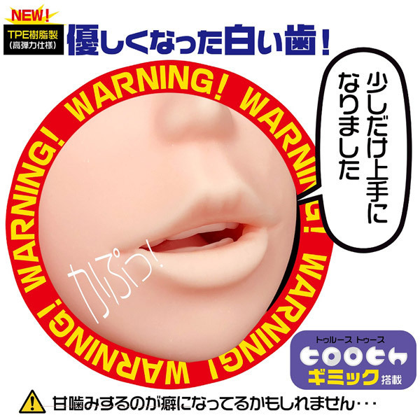 超やわらかで丈夫な素材「めるてぃスキン」を使った表面の肌に、絡みつくような厚めの粘膜素材のお口と高弾力のTPE樹脂を使った真っ白い歯がリアルなオーラルプレイを再現!フェラに慣れていない女の子が、あどけなさの残る甘噛みをするようなフェラを存分にお楽しみください♪