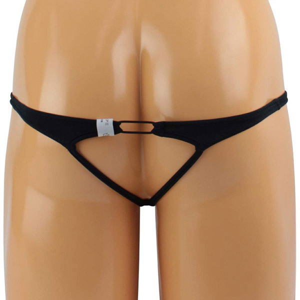 亀頭をチラリと覗かせセクシーにアピールする日本製のVバック(メンズ用)。