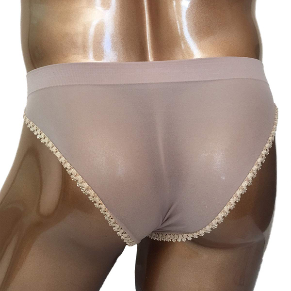 縁に施された刺繍がアクセント!光沢感や透け感など生地特有の質感で男の象徴をセクシーに魅せるサオ収納ポケット付きの男性用下着。