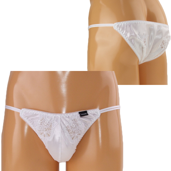 前後の花柄刺繍からうっすら見える素肌がセクシーな一枚!女装下着用にぜひ♪