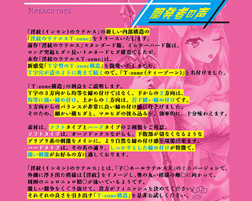 締め付け&密着感抜群のT字型T-zone構造が絶妙な快感をもたらす日本製の非貫通オナホ。