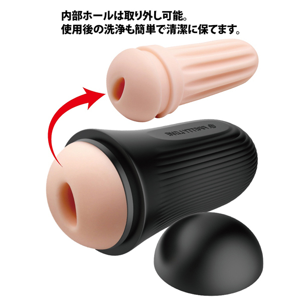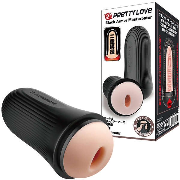 二層構造とは違う、ブラックアーマーを纏った「二重構造」だからこその締め付け感!握って内部の圧力を調整できるプリティラブの非貫通オナホ。