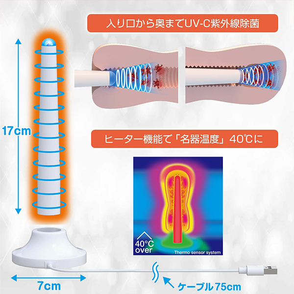 オナホウォーマーの悩みをまとめて解決!超強力UV−C除菌でクリーン&ホットなオナホを今すぐご提供!ケーブルのわずらわしさから解放するコードレスな魔法のスティックです!超強力UV−Cで除菌はばっちり。