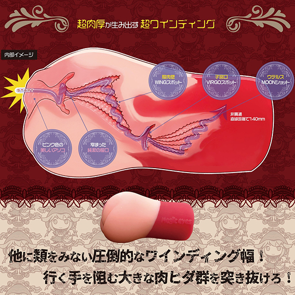 超肉厚だからこそ実現した「超ワインディング」、交互に重なる肉ヒダウイングを進むと子宮口に到達♪ムーンショットエリアで先端を包み込まれながら最奥部へ侵入せよ!重量感たっぷりな肉厚もりまんボディに美しい極彩成形が施された野心的な快感が堪能できる極彩ウテルスのムーンショットオナホ♪生身の人間とのセックスより気持ちいい!それぐらいに急進的なイノベーションでかなり変化球な刺激が堪能できるオナホールです♪素材には食品衛生法第370号準拠の「ラブラバスキン(Love Lover)」を採用したムーンショット型フルスペックハンドオナホールとなっています。