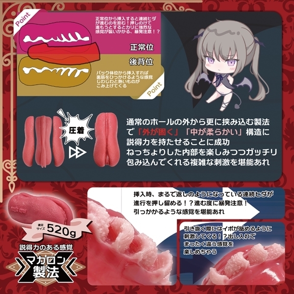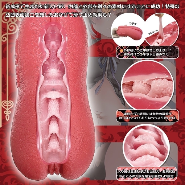 内部には粘膜層もあり3種の素材で構成されています♪大きな三連返しヒダと細かなイボは上下を逆転させる事で全く異なる使用感!520gの大型ボディの素材には厚生労働省、食品衛生法第370号に準拠した「Magiceyes Skin」を採用しているので安心してご使用頂けます。