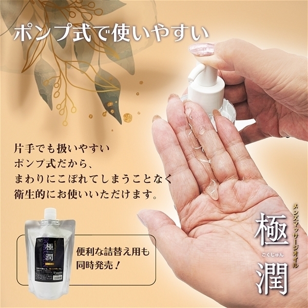 「最上級の潤い」、「最上級の滑らかさ」、さらに「最上級の使いやすさ」を追い求めて完成したマッサーオイル「極潤」。