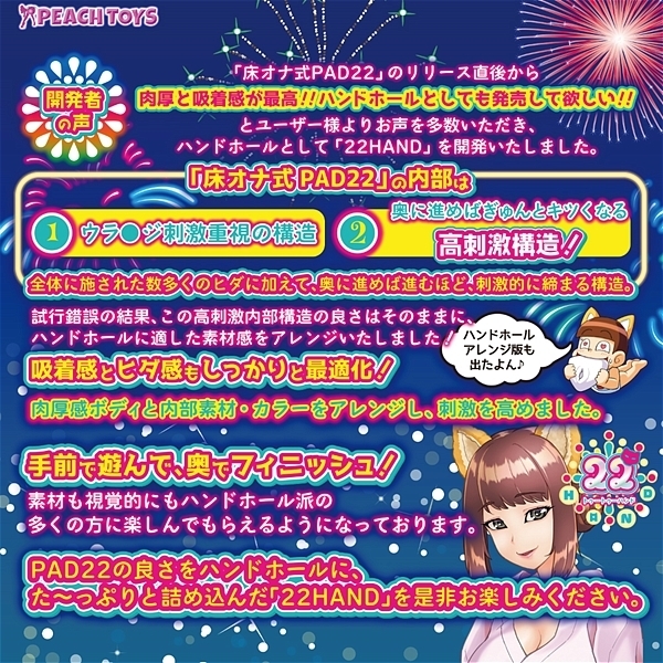 試行錯誤の結果、この高刺激内部構造の良さはそのままに、ハンドホールに適した素材感をアレンジいたしました!吸着感とヒダ感もしっかりと最適化!