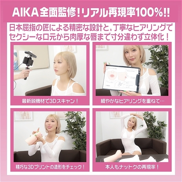 人気女優「AIKA」の国民的ギャル美顔を精密3Dスキャンで完全再現!AV女優の顔を具現化する唯一無二のフェラホール「神フェラ」が非電動の肉厚密着型になり、気持ち良さをさらに徹底追求!今回は、デビュー以来、輝かしい受賞を重ねてきた国民的黒ギャル女優「AIKA」を、最新鋭機材で3Dスキャン。
