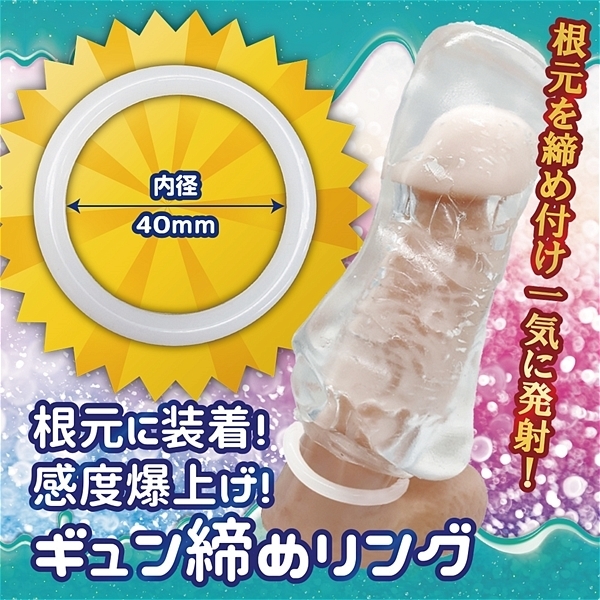 とろけるゼリーのようなホールと、ギュッと締めるリングの快感満点セット!とろけるやわもちホールと感度爆上げのギュン締めリング、さらにたっぷり楽しめるローションが付属。