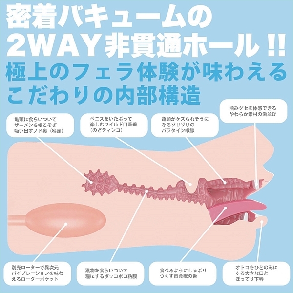 500gクラスの肉厚密着感と、人工粘膜による2層構造、そして趣向を凝らした口腔ギミックにより<石原希望>のむさぼるような貪欲フェラを体感できるのです。