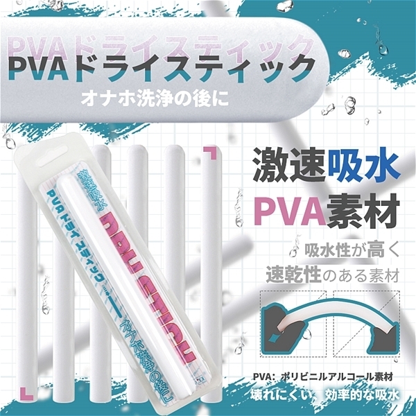 吸水性が高く、速乾性のある「PVA(ポリビニルアルコール)」素材採用<使い方>洗浄して水を切ったオナホの穴にスティックをそっと差し込みます。