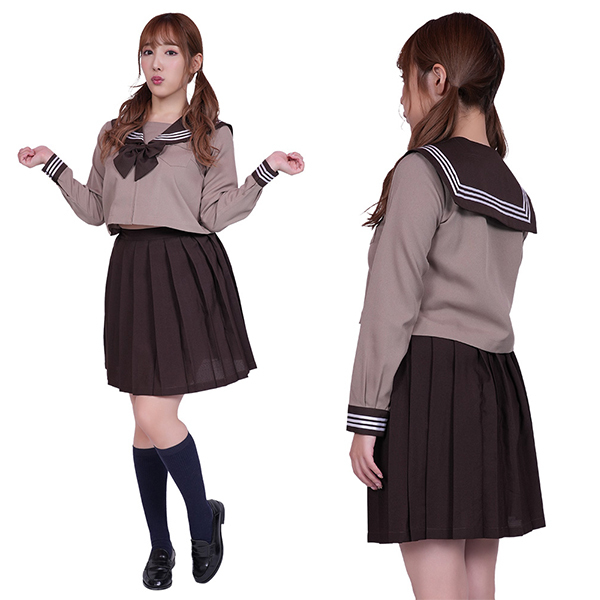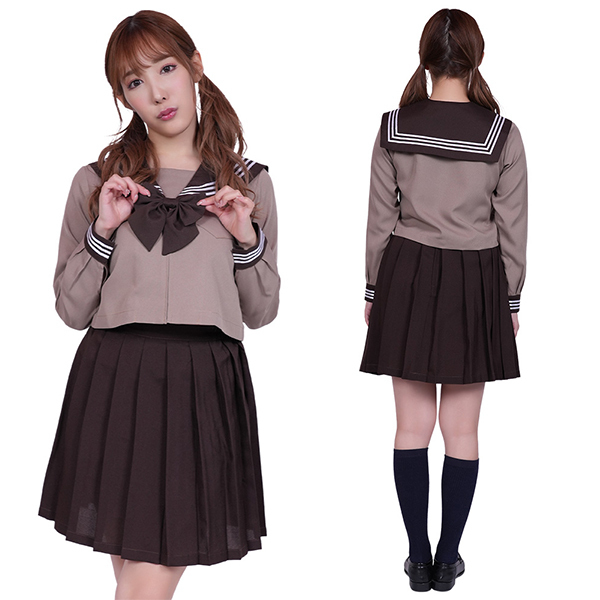 ■ サイズ・ セット内容 | 着丈43cm・肩幅37cm・袖丈54cm・B94cm〜98cm・スカート総丈47cm・W66cm〜70cm セット内容:長袖セーラー服、スカート、リボンタイ |