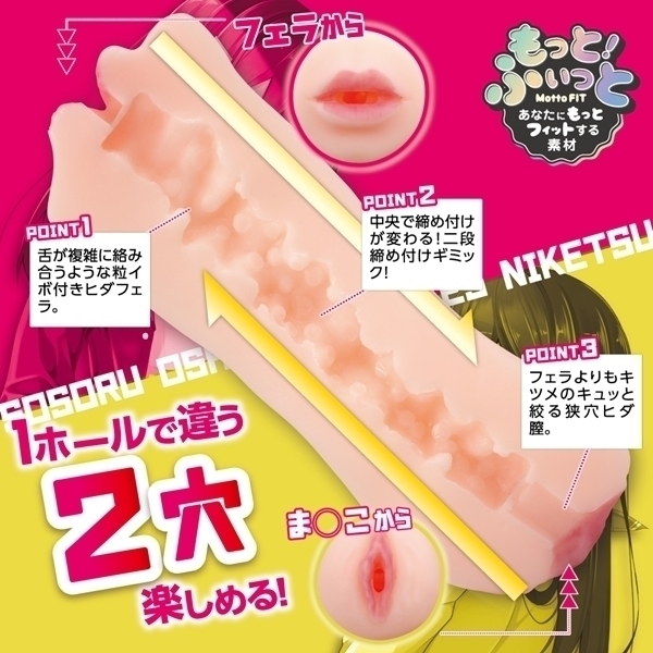 極上お汁まみれ肉弾接待は、前と後ろからの挿入を楽しめるミニサイズのオナホールです♪このアイテムは、フェラとヴァギナの2つの穴を採用した貫通型シリーズで、フェラ側の大ぶりな絡みつくヒダと、ヴァギナ側のランダムに配置された粒イボが絶妙な刺激を提供します!中央部分で締まり具合が変化するのも特徴で、リアルな感触を追求しました♪貫通型のデザインにより、使用後の洗浄も簡単で、手軽にお手入れが可能です!ミニサイズでもしっかりとした満足感を提供するこのアイテムで、新たな体験をお楽しみください♪