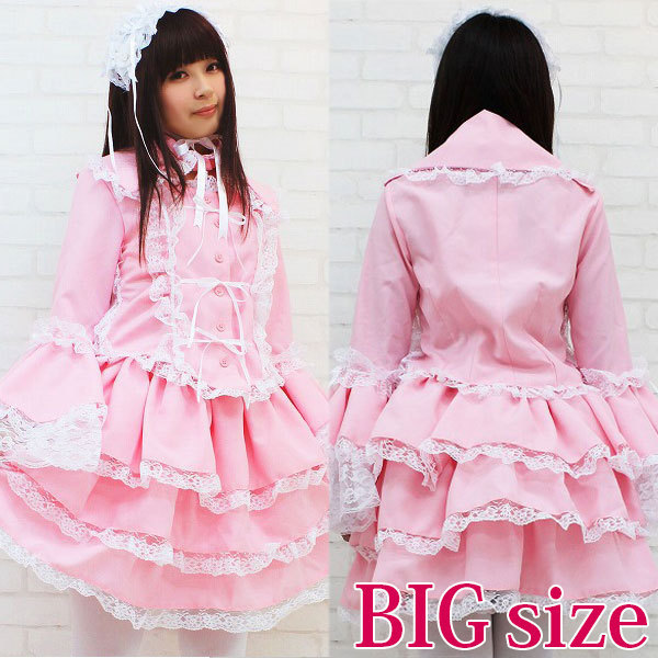 | ■ サイズ・ セット内容 | BIGサイズ:B〜100cm・W72〜120cm 丈:上着52cm(袖丈65cm・肩幅40cm)・スカート49cm 付け襟(首回り)43cm セット内容:上着(前ボタン)・スカート(ウエスト部分ゴム、スカート3枚仕立て、裏地付き、チュールパニエ付き)・付け衿(ボタンにて着脱可)・ヘッドドレス | ||