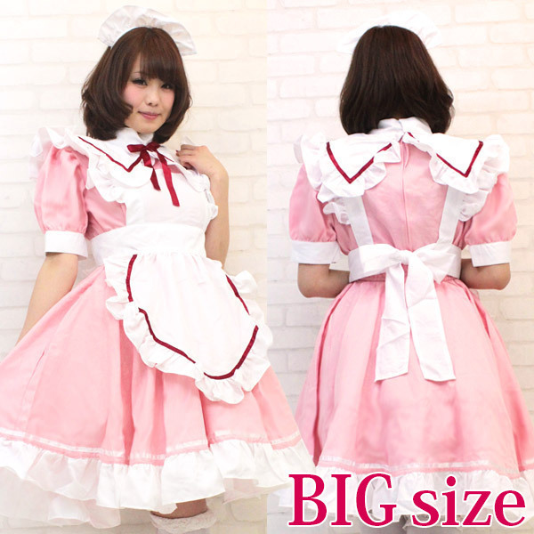 | ■ サイズ・ セット内容 | BIGサイズ:B92〜110cm・W90〜100cm 丈:ワンピース91cm(肩幅:43cm、袖丈31cm、袖口38cm)・エプロン83cm セット内容:ワンピース(ウエストゴム入り、後ろファスナー)、エプロン、カチューシャ | ||