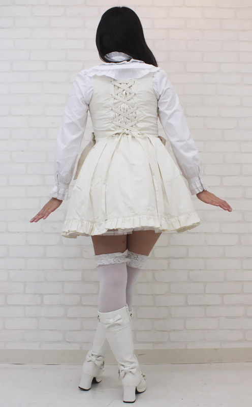 | ■ サイズ・ セット内容 | BIGサイズ:B92〜100cm・W90〜88cm 丈:ジャンパースカート84cm・ブラウス58cm(肩幅37cm、袖丈62cm、袖口22cm) セット内容:ジャンパースカート(横ファスナー、後ろ編み上げシャーリング、パニエ内蔵)・ブラウス(前ボタン、後ろ編み上げシャーリング) | ||