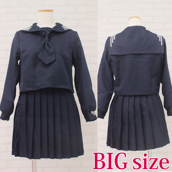独特の3本ラインがポイントになった、私立女子学園の冬服セーラー服(BIG)。
