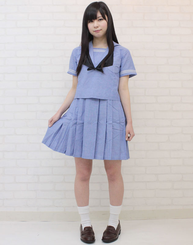ブルーカラーが爽やかなジャンパースカートタイプの夏服セーラー服(M)。