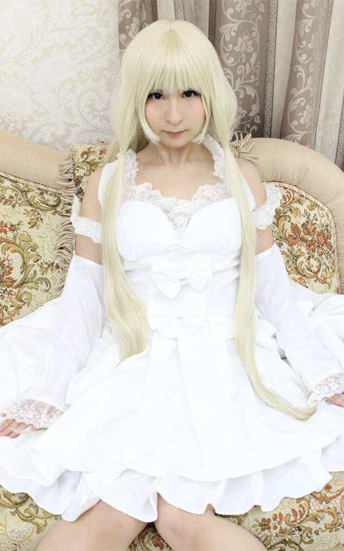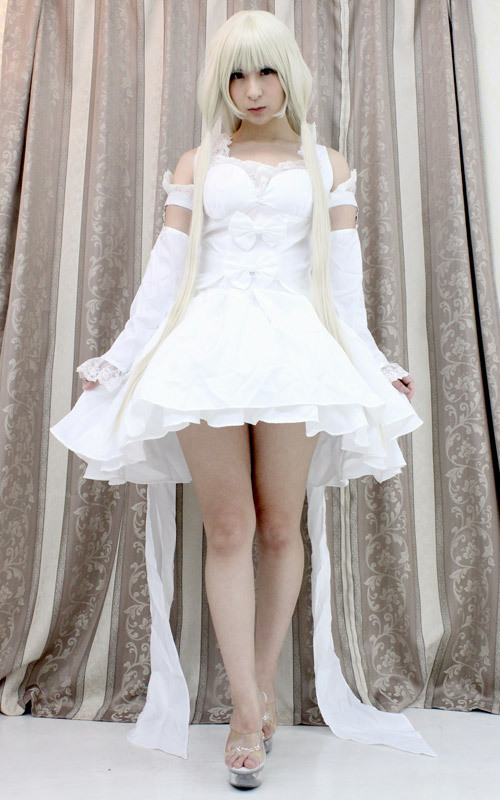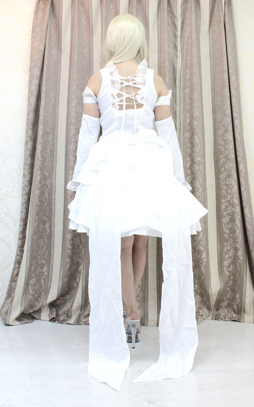清楚でキュート!大きめサイズ、ロマンティックな純白ドレスのアニメコスプレ。