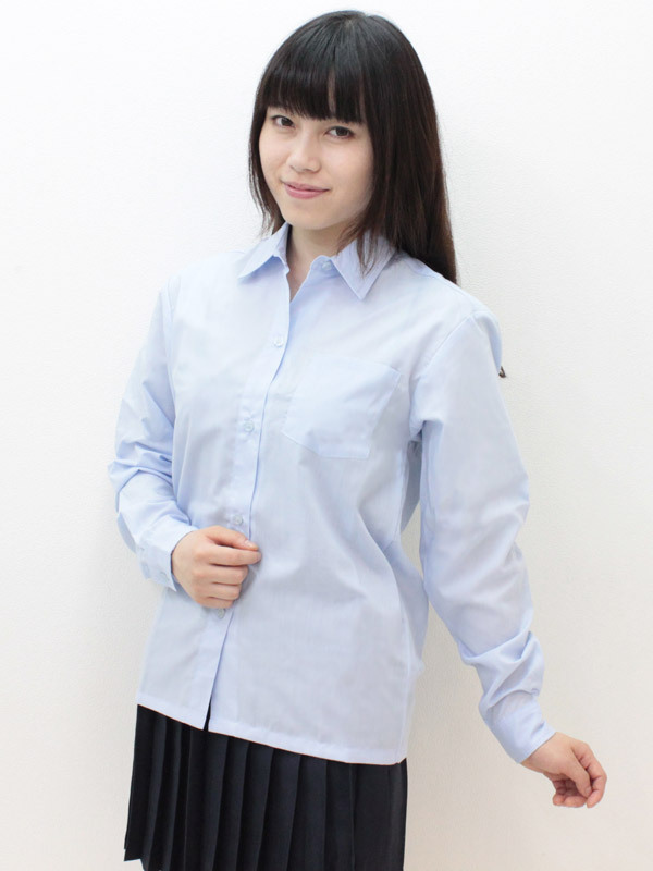シンプルだけど、どこか可愛い!色んな着こなしが楽しめるサックスカラーの長袖シャツ(BIG)です。