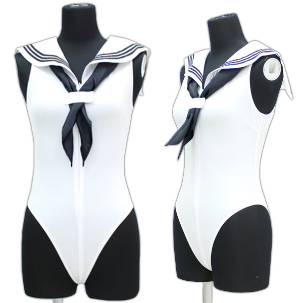 大人気のセーラー服とレオタードが合体!セーラー襟+スカーフ付きセーラーレオタード「セーラーノースリーブレオタード 白 BIG」。