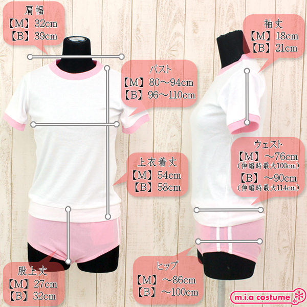 人気の体操服コスプレにピンクの大きめサイズが登場!トップスとブルマの嬉しい上下セットで、白とピンクの色使いが可愛い、肌触りバツグンの伸縮性のある素材を使用した体操着コスプレです。