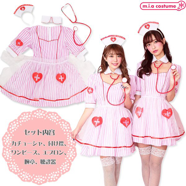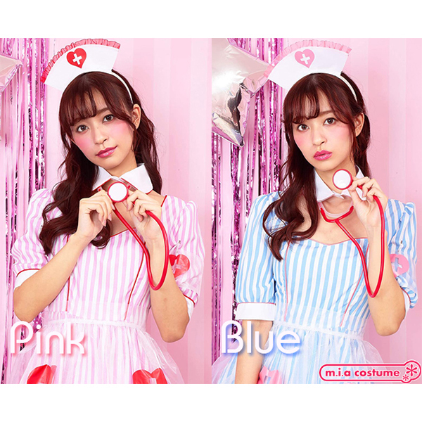 聴診器も付いていて充実の6点セットが嬉しい♪付け襟と開いた胸元が魅力的でポップな配色がフォトジェニックです。
