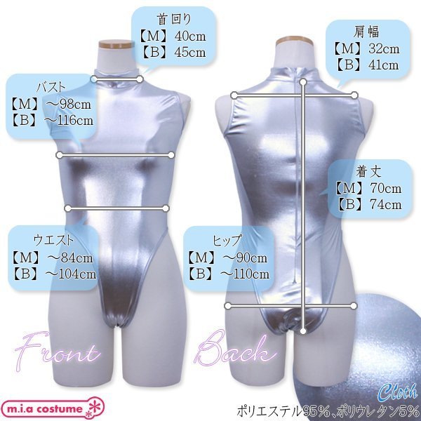 | ■ サイズ・ セット内容 | Mサイズ:B〜98cm・W〜84cm・H〜90cm・肩幅32cm・首周り40cm・着丈70cm セット内容:レオタード単品(後ろファスナー) 素材:ポリエステル95%、ポリウレタン5% | ||