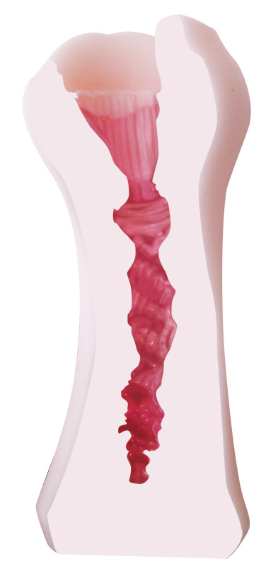 即尺OKのぱっくり開いたお口に挿入すると、内部は縦スジが密集!しっかりと擦りあげながら刺激します。