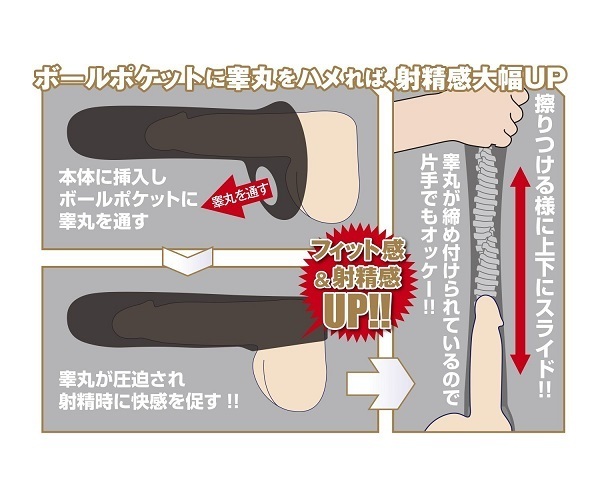 コックリングのように締め付ける役割を果たすボールポケットを採用!早漏を防ぎつつ射精感もマシマシになる嬉しい効果を得られます。