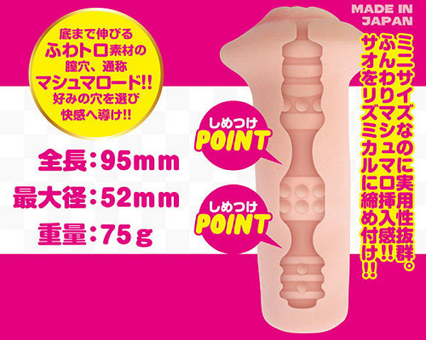 刺激系・緩穴系・狭穴系、3つの異なる内部形状を、ふわトロ素材で手軽に楽しめるミニオナホの決定版!底まで伸びるふわトロ素材の膣穴、通称『マシュマロード』射精感抜群な好みの穴を選び快感へ導け!刺激系のモモカはサオをリズミカルに締め付けながら膣内のイボで亀頭を責める!●高品質な純国産●非貫通タイプ●専用ローション付き