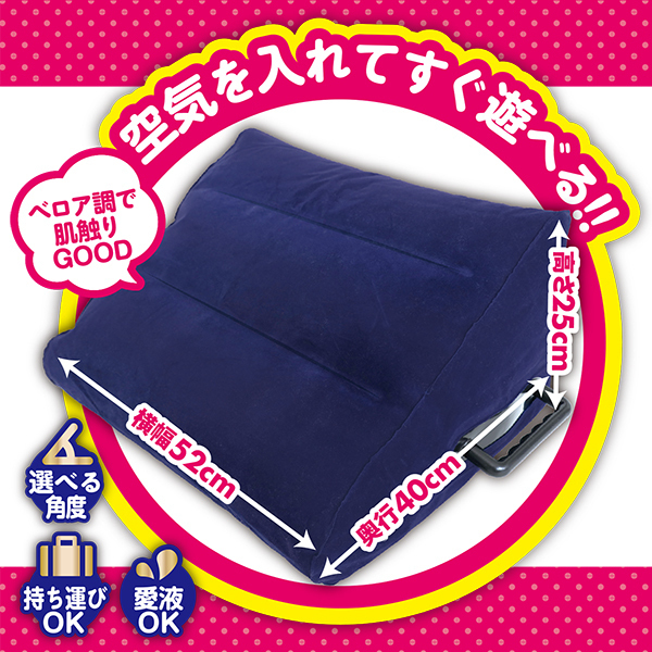 もうちょっと腰の位置が高かったら…もう少し彼の身長が高かったら…彼女がもう少し上付きだったら…このもうちょっと…を解消してくれるのが、三角形でグリップ付きのエアクッション「ラブポジクッション」!置き方次第で急角度とゆる角度を選べます。