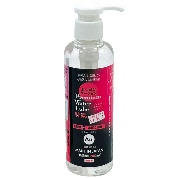 『水のように滑らか、でもヌルヌル感持続!ふき取るだけでOK!』「ふくだけローションPremium Water Lube (180ml)」が、ラベルデザインと容量・成分をリニューアルして再登場です!白いポンプの「ふくだけPWL 特濃」は、【低粘度+濃厚な液体】入口の大きなオナホールでも垂れにくい。