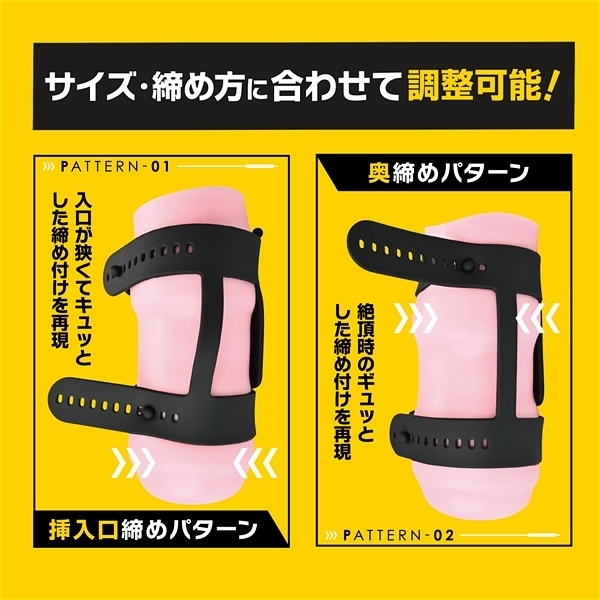オナホに装着して2箇所の締まり具合を自在に調節圧迫出来る伸縮性シリコンベルト。