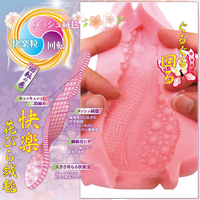 3種の花びらが舞い乱れる肉感トルネード!グニュグニュとトロける密着快感で、上下運動でも回転運動でも大満足できる万能オナホールです。