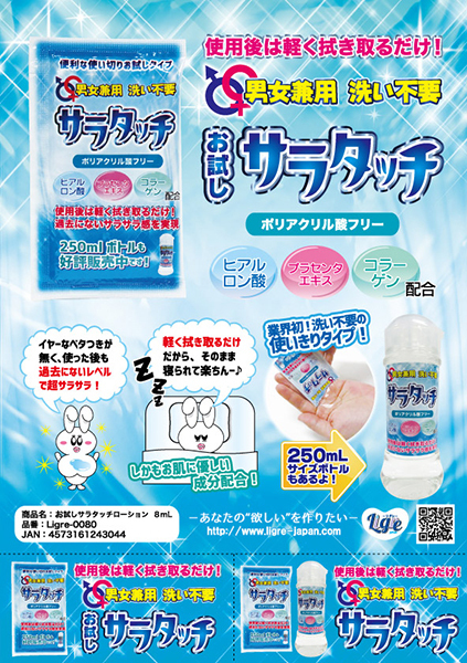 拭き取るだけで綺麗さっぱり♪「男女兼用 洗い不要サラタッチ」の使い切りサイズが登場。