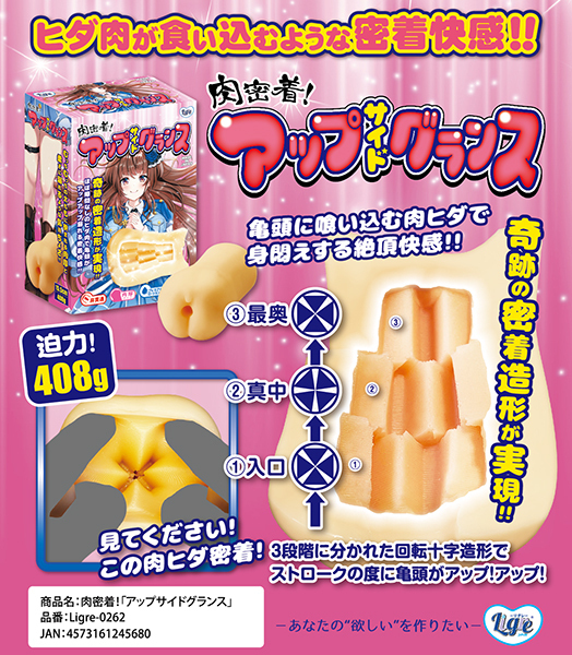 完全密着!肉密着!「アップサイドグランス」の登場です!見て下さい!この肉密着!ほとんど隙間がないぐらいの奇跡の造形!入り口から十字、そして徐々に回転していき角度が変わる!そこを押し込むように挿入していく。