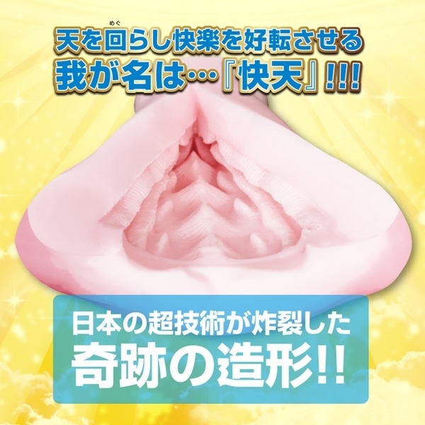 天を回(めぐ)らし、快楽を好転させる!!名は…「快天」!!ここに最高のオナホが完成!「快天」の登場です!!ウェーブした極太ヒダの連続!曲がり曲がって亀頭に吸着し離さない!入り口から何重にも連続するヒダの嵐!天井に極太段々ヒダ!左右や下には波打つ数本のヒダで亀頭をロック!中間では上下で交差するクラッシュゾーン!そして最奥では亀頭を咥え込むヒダゾリが控えている!!最初から最後までヒダに翻弄されるオナホ…まさに「快楽の天国」=快天!!内部ギリギリまで表現したヒダは、まさに芸術の域!日本の型師の超越技術が炸裂した純日本製!奇跡の造形をあなたの亀頭で感じてください。