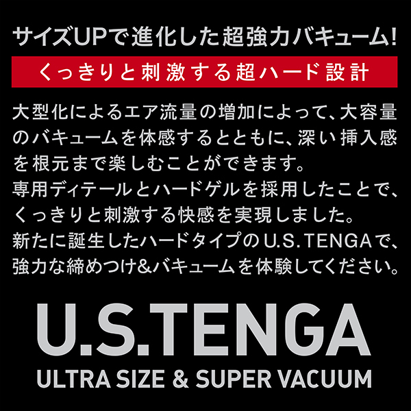 強めのバキュームとゆったりした挿入感が特徴の「US TENGA」が待望のリニューアル!ノーマルサイズのテンガより約1.6倍の体積に設計されているため違いがハッキリわかります♪完全リニューアルされたラインナップは3種類。