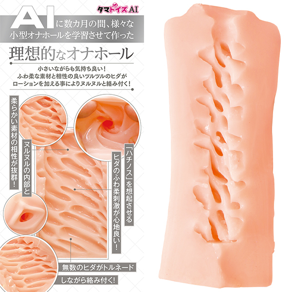 AIに数カ月間学習させて作り上げた理想的な非貫通型オナホールです♪コンパクトなサイズながらも、驚きの快感を提供します!ふわ柔な素材と相性の良いツルツルのヒダがローションを加えることで、ヌルヌルと絡みつき、快感を増幅させます♪内部は蜂の巣を思わせる小さなポケットが密集しており、立体的なスラッシュヒダがサオを奥へと誘い込む!ちょっとタイトめなキツ穴な感じと高さのある立体的なヒダがしっかりとした刺激を提供し、満足感を得られます♪国内工場で生産された高品質なフレキシブルスキン素材を使用しており、弾力とレスポンスの良さが抜群!小さめサイズでハンドリングしやすく、どんな時でも手軽に楽しめるデザインです♪パッケージイラストも内部構造もAIにお任せした、究極の非貫通型オナホールをぜひお試しください!●メーカー型番:TMAImini-001