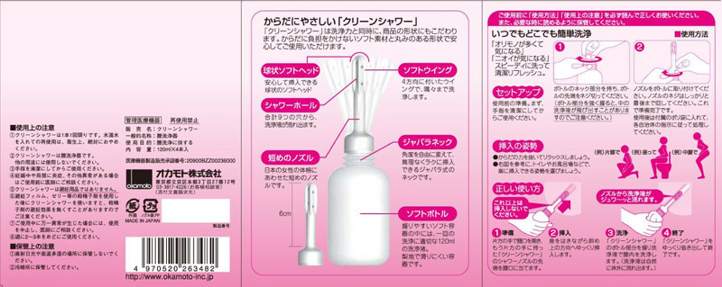 生理の終わりかけやオリモノの多い日を始め、ラブタイム前やプール&海水浴後の洗浄をトイレやお風呂場で済ますことができます。