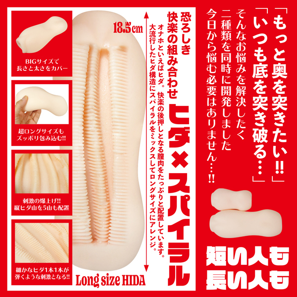 ヒダ突起に螺旋に渦巻くスパイラル構造をプラス、快感を後押しする内部に設計!ほかにもショートサイズもご用意しております。