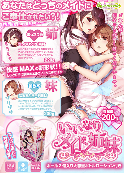| ■ サイズ・ セット内容 | 非貫通型 パッケージ:20.5×13.5×7.5cm 本体:姉(15.5×7.5×5.5cm)、妹(14.0×7.3×5.0cm) 重量:姉(220g)、妹(200g) | ||