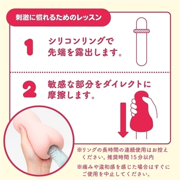 『早くイッちゃダメ!』刺激ほぼゼロ!超絶まったり系!やわらか、とろ〜り生オナホ!あなたの先端をちゅるんと飲み込むプリプリポルチオ搭載!とぅるんとぅるん快感のチュポチュポとろけるレッスン!付属のシリコンリングで敏感部分を露出し先端強化!ぷにっとソフトなリングで優しい締め付けを可能にしています。