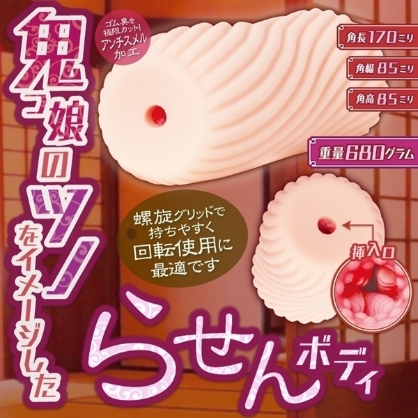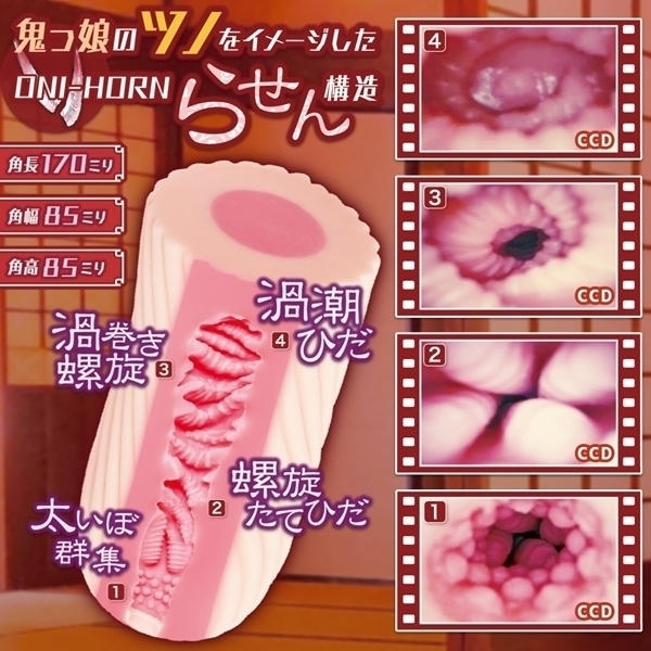 「今宵は逃がさぬぞ!朝までみとのまぐわいじゃ!!」オニノコ・フロウは鬼っ娘の「ツノ」をイメージした”らせん”特化のオナホールです。