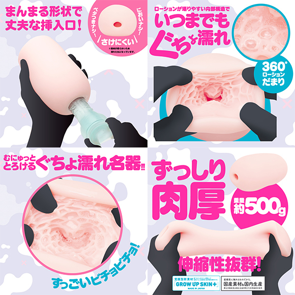 むにゅっととろけるぐちょ濡れ名器!すっごいビチョビチョの濡れやすい女の子ができました!360°ローションだまり!驚異のローション保有率でいつまでもグチョグチョ!激しめのウネウネロードはピストンするたびにぐりゅんぐりゅんとうごめくウェーブ快感!ヒダのシャクシャク感触もオススメでローションを閉じ込めるだけではない繊細な造形です!ずっしり肉厚な重量約500Gの中型ホールです。